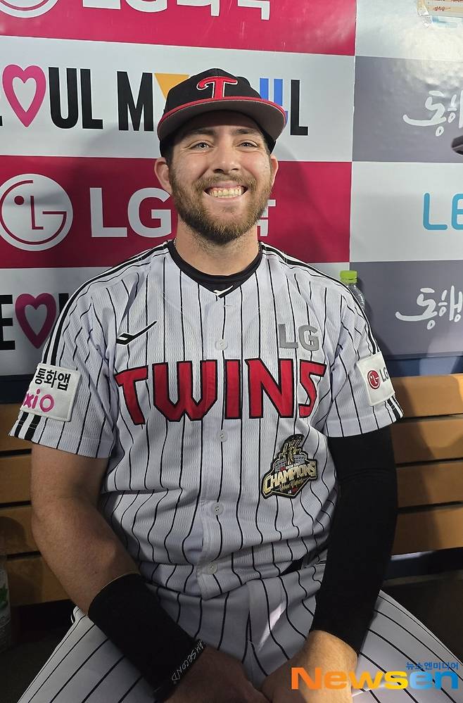 오스틴의 가족들도 이제는 한국에 익숙해졌다. 특히 아들인 댈러스는 한국에서 계속 성장하고 있다. 오스틴은 "댈러스가 작년까지는 전광판 화면에 잡히면 부끄러워하는 모습이었는데 올해는 잘 웃으며 즐기더라"며 "댈러스도 LG에 대한 애정이 깊다. 내가 원정을 가도 항상 TV로 경기를 챙겨본다. LG 선수들의 이름과 등번호, 심지어 응원가도 다 외우고 있다. 댈러스는 인생의 대부분을 한국에서 보낼 수 있는 기회를 얻었고 그건 축복인 것 같다. 그리고 댈러스의 '최애(가장 좋아하는)'선수는 내가 아니라 홍창기다"고 웃었다.(사진=오스틴)