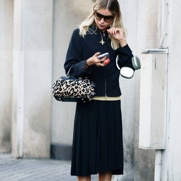 군더더기 없는 디자인의 블랙 미디 스커트는 옷장의 중심을 잡는 코어 아이템입니다. 모던하고 포멀한 스타일부터 낭만적인 걸리시 룩까지. 블랙 미디 스커트가 커버하지 못하는 스타일은 없죠. 미니멀한 실루엣의 톱과 매치하면 치마의 간결한 매력을 한껏 살릴 수 있을 거예요. 대신, 가방이나 신발의 형태감은 약간 변주가 필요합니다. 자칫 심심해 보일 수 있는 룩에 포인트는 필수니까요.