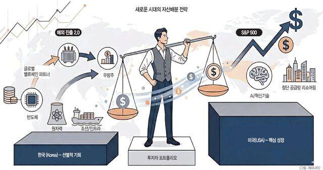 이러한 글로벌 거시 경제의 패러다임 변화 속에서 현명한 투자자가 나아가야 할 자산배분 전략의 방향성은 명확해진다. 포트폴리오의 장기적인 안정성과 성장을 도모하기 위해서는 미국 시장을 핵심축으로 삼아 자산의 무게중심을 두고, 한국 시장은 선별적인 투자 기회로 분산하는 전략이 효과적이다.