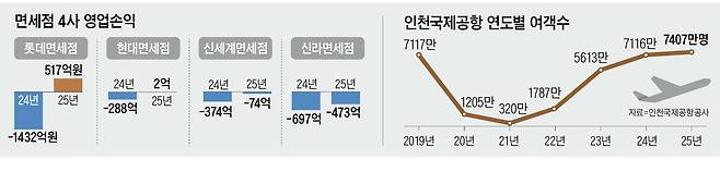 오는 17일 롯데면세점이 인천국제공항에 재입성한다. 2023년 철수 이후 3년 만의 귀환이다. 이로써 인천공항 면세 시장은 롯데·신라·신세계·현대의 4파전 구도로 되돌아왔다. 하지만 과거처럼 ‘무조건 따고 보자’ 식의 출혈 대결은 사라졌다. 고환율과 해외 여행객의 소비 패턴 변화라는 큰 파고 앞에서 국내 면세업계는 ‘몸집 불리기’ 대신 ‘실리 위주의 체질 개선’이라는 새로운 경쟁 구도로 돌입하고 있다.