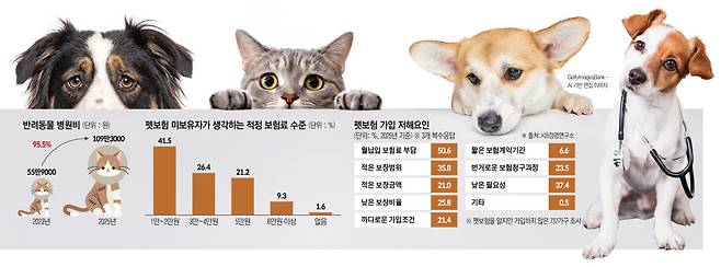 이러한 인식의 간극은 객관적인 수치로도 증명된다. KB경영연구소가 발표한 ‘2025 한국 반려동물 보고서’에 따르면, 반려동물 보험에 대한 인지도는 91.7%로 매우 높게 나타났다. 그러나 미가입 사유를 살펴보면 ‘월 납입 보험료 부담(50.6%)’이 절반을 넘었으며, 가입자들의 불만 사항 역시 ‘적은 보장 범위(43.1%)’와 ‘보험료 수준(42.6%)’이 압도적인 비중을 차지했다. 결국 보험료를 낼 때는 부담이 크고 막상 혜택을 받으려 하면 보장이 부족하다는 것이 시장의 냉정한 평가다.
