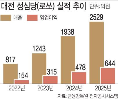 14일 성심당 운영사 로쏘에 따르면 지난해 매출액은 2629억원으로, 소비 침체 속에서도 전년(약 1937억 원) 대비 35.7% 증가했다. 올해는 연매출 3000억원도 가능하다는 게 업계 전망이다.