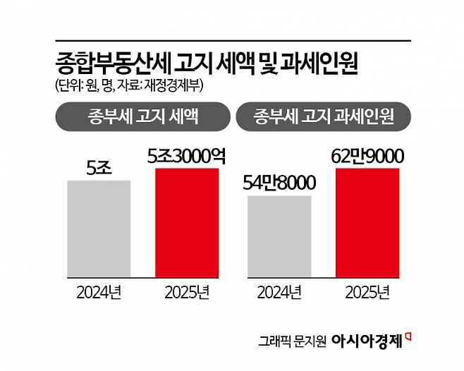 보유세 부담은 집값 상승과 맞물려 점차 커지고 있다. 서울 공동주택 공시가격은 평균 18.67% 올라 5년 만에 최고 상승률을 기록했다. 지난해 종합부동산세 고지 현황을 보면 지난해 종부세 고지액은 5조3000억원으로 전년 5조원 대비 3000억원 증가했다. 고지 과세 인원도 62만9000명으로 1년 만에 8만1000명 늘었다.