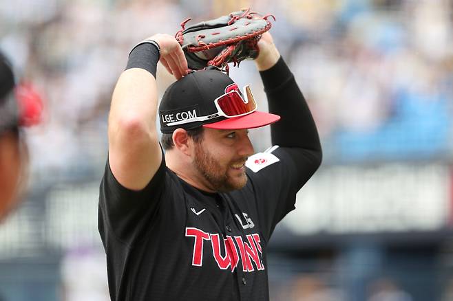 LG 트윈스 외국인 타자 오스틴 딘은 14일 잠실 롯데 자이언츠전에서 결승 홈런을 포함해 3안타를 기록하며 수훈 선수로 뽑혔다. 경기 종료 후 방송사 인터뷰, 단상 인터뷰에 이어 취재진 인터뷰까지 소화했다.