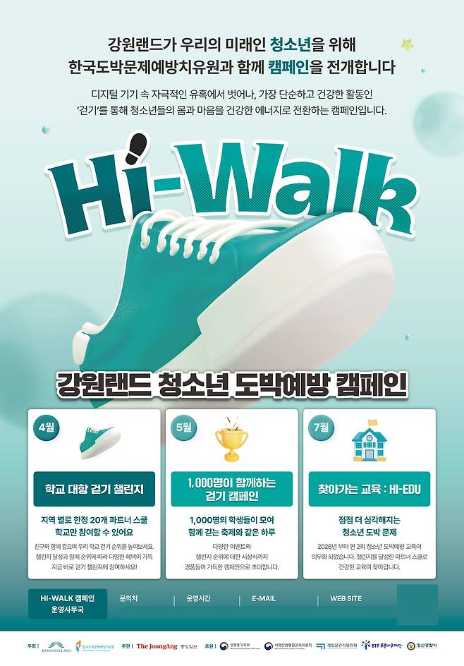 강원랜드, 청소년 도박예방 캠페인 'HI-WALK' 15일 개시