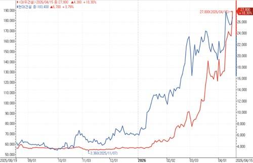 연초 이후로 대우건설 주가는 533% 상승해 지난 14일 종가 기준 2만3천500원을 기록했다.