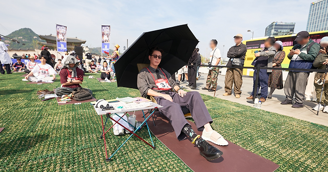 14일 서울 광화문 육조마당에서는 '2026 광화문 멍 때리기 대회'가 열렸다.