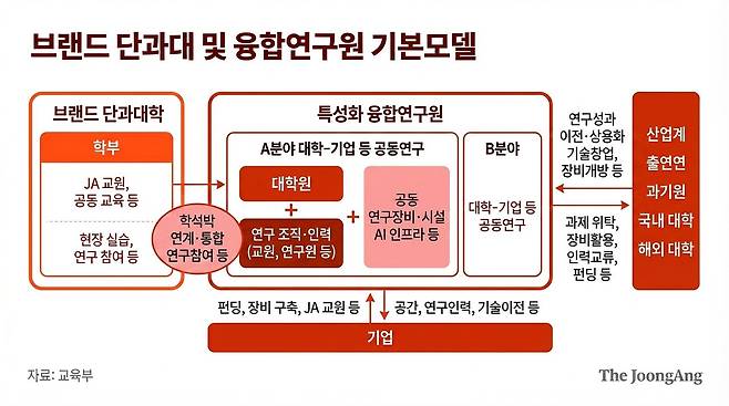 연구 기능도 강화한다. 대학 안에 기업과 정부출연연구기관, 과학기술원, 서울대 등 국내외 대학이 함께 참여하는 연구 조직을 두고, 대학과 기업이 공동 운영하는 연구소에서 기술 개발부터 산업 현장 적용까지 한자리에서 처리한다. 교육부는 이를 ‘특성화 융합연구원’이라고 이름 붙였다.
