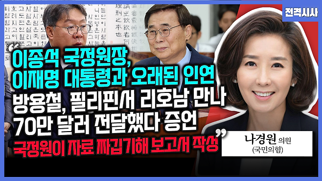 [전격시사] 나경원 국민의힘 의원 - “이종석 국정원장, 이재명 대통령과 오래된 인연” “방용철, 필리핀서 리호남 만나 70만 달러 전달했다 증언”