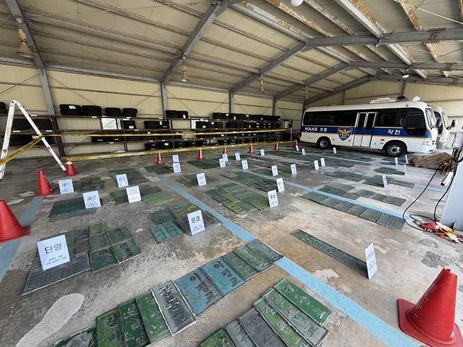 이들이 훔친 동판의 총무게는 1천910㎏에 이릅니다. 경찰은 피의자 동선 추적 중 절취한 동판이 고물상을 거쳐 제련공장으로 거래된 사실을 확인하고 피해품 전량을 압수했습니다.