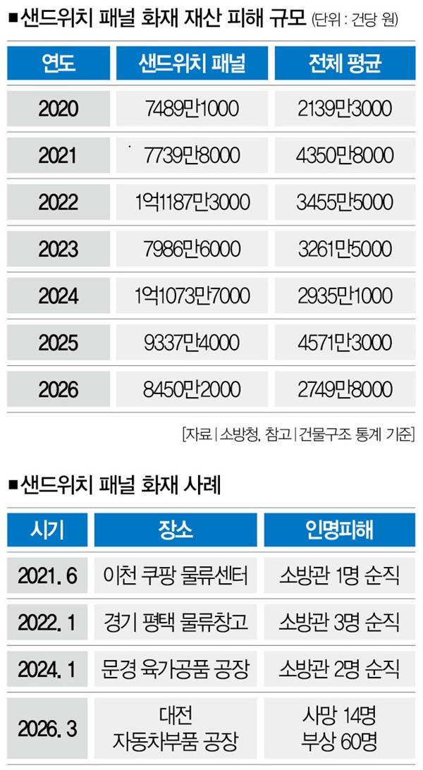 대전 대덕산업단지 자동차 부품공장 화재로 샌드위치 패널의 위험성이 드러났다. 한두번이 아니다. 2021년 품질인정제도를 도입하기 전 시공한 '샌드위치 패널'에서 터진 사고는 차고 넘친다. '샌드위치 패널'이란 사고의 원흉이 '법망 밖'에 있다는 건데, 대책은 없을까. 이영주 경일대(소방방재학부) 교수에게 물었다. 視리즈 대형사고 10년의 기록, 정책적 대안 첫번째 편이다.