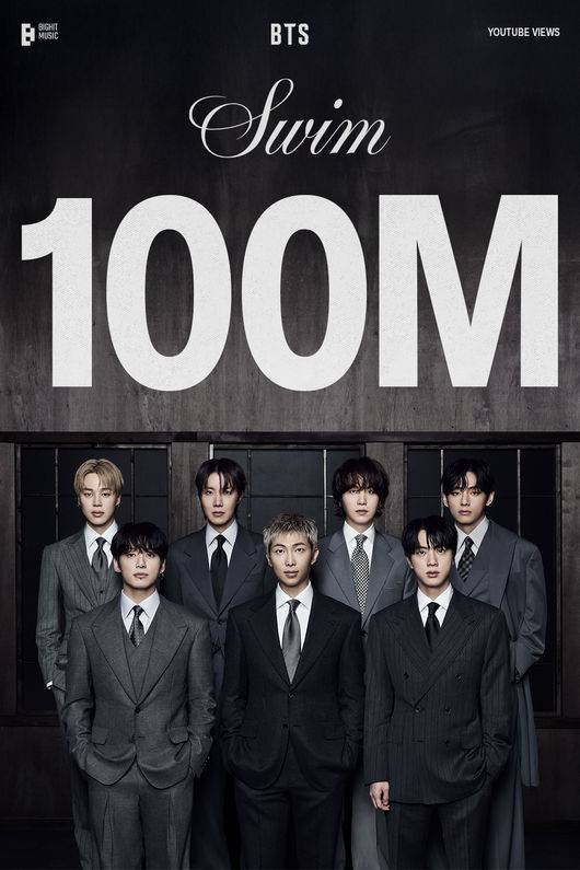 그룹 방탄소년단(BTS)이 글로벌 히트곡 'SWIM'으로 1억 뷰를 달성했다.