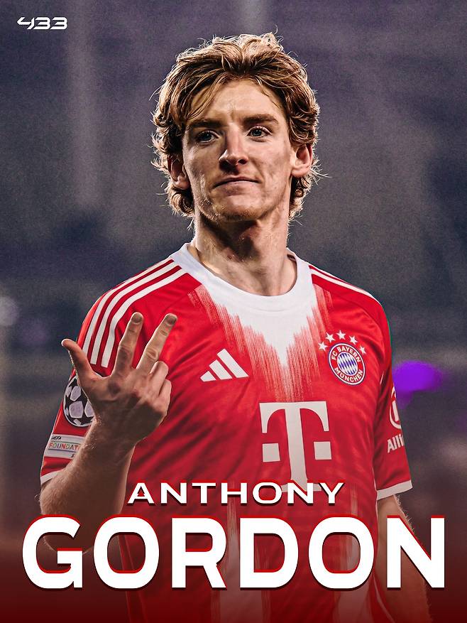 [골닷컴] 강동훈 기자 = 잉글랜드 국가대표 공격수 앤서니 고든(25·뉴캐슬 유나이티드)이 바이에른 뮌헨(독일)의 관심을 받으면서 이적설이 제기됐다. 바이에른 뮌헨은 단순한 관심이 아닌, 올여름 고든을 ‘최우선’ 영입대상으로 낙점하면서 실제로 영입을 준비 중인 것으로 전해졌다.