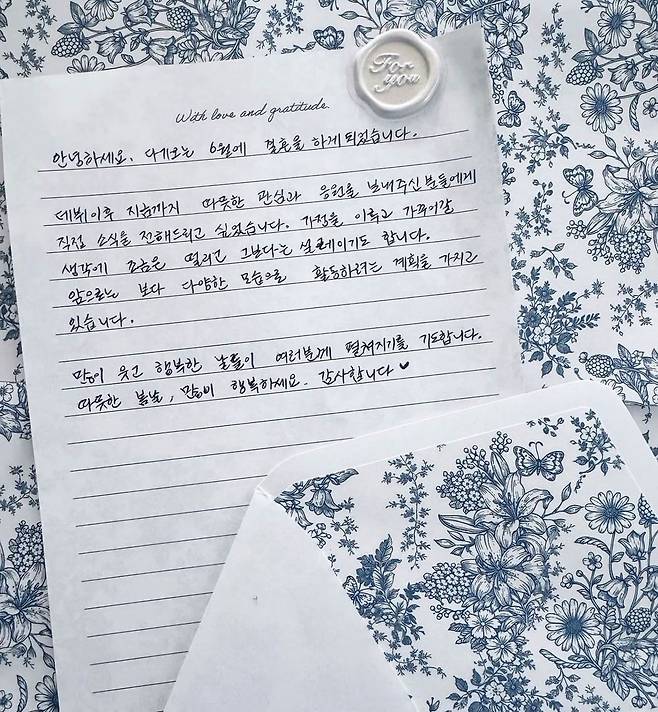 추가로 문채원 역시 자신의 계정을 통해 직접 결혼 소식을 전했다. 그는 "안녕하세요. 다가오는 6월에 결혼을 하게 되었습니다"라며 글을 시작했다. 이어 그는 "데뷔 이후 지금까지 따뜻한 관심과 응원을 보내주신 분들에게 직접 소식을 전해드리고 싶었습니다"라며 "가정을 이루고 가꾸어 갈 생각에 조금은 떨리고, 그보다는 설레이기도 합니다"라고 심경을 고백했다. 특히 그는 손 편지 형식으로 진심을 담아 직접 글을 작성하며 팬들에게 감사의 마음을 드러냈다. 추가로 그는 앞으로 보다 다양한 모습으로 보여주겠다는 뜻을 전하며 결혼 이후에도 꾸준히 활동을 이어가겠다는 계획을 밝혔다.