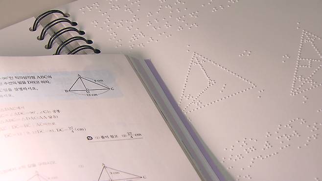 그나마 A 양은 사정이 나은 편에 속한다고 합니다. 이런 일을 겪을 때마다 특수교사가 최대한 조력을 제공하고 있기 때문인데, 다른 곳은 상황이 이 정도로 여의치는 않습니다. A양도 교과서 외 나머지 교과 자료나 문제집에 대해서는 부모님이 나서 별도의 점자 자료로 제작해야만 했습니다.