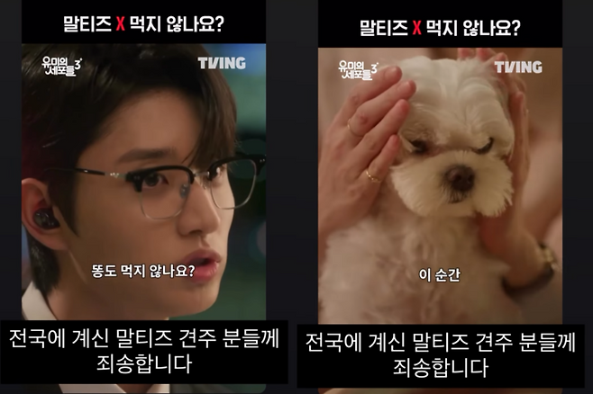 지난 13일 공개된 티빙 드라마 '유미의 세포들3' 1회 말미에서 신순록(김재원)이 김유미(김고은)가 돌보는 말티즈 코코를 신경 쓰지 않고 '말티즈는 지능이 낮고 똥을 먹지 않느냐'고 말해 김유미의 '욕 세포'를 깨우며 전국의 말티즈 견주들을 분노케 했다.