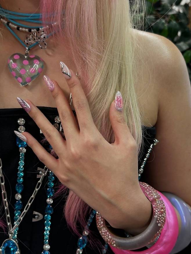 코첼라 페스티벌의 첫날 공연을 장식한 캣츠아이 는 핑크, 블랙, 실버 컬러를 중심으로 멤버마다 다채로운 개성을 드러냈습니다. 도트, 스트라이프, 플라워 등 다양한 패턴과 함께 리본이나 입체적이고 기하학적인 장식을 더해 전체적으로 Y2K와 미래적인 무드가 공존하며 키치한 네일 아트를 선보였습니다.