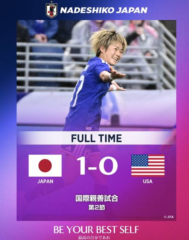 '나데시코 재팬'(FIFA 랭킹 5위)은 현재 임시 감독 체제로 미국(랭킹 2위)과 세 차례 원정 친선경기를 펼치고 있다. 지난 12일(이하 한국시각) 첫 번째 맞대결에서 1대2로 패한 일본은 15일 미국 워싱턴 루멘 필드에서 열린 두 번째 맞대결에선 1대0으로 승리했다. 21세 공격수 하마노 마이카가 결승골을 넣었다. 이날 경기에는 3만6128명의 관중이 들어찼다.
