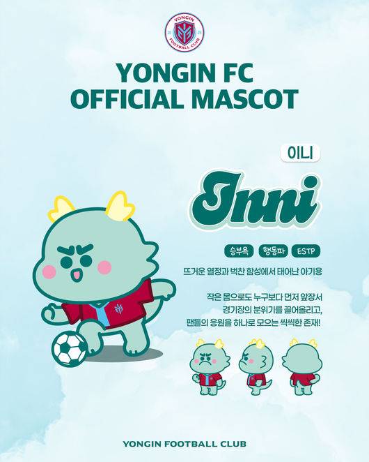 특히 두 마스코트에는 용인 시민들이 축구를 매개로 하나로 모이며 만들어낸 열정과 응원의 에너지가 깨어나, 용인FC를 상징하는 ‘용’의 모습으로 구현됐다는 서사를 반영했다. 이를 통해 용인FC는 구단이 지닌 역동성과 지역성을 보다 감각적인 방식으로 전달하고, 팬들과의 정서적 연결고리를 한층 확장해 나갈 계획이다.