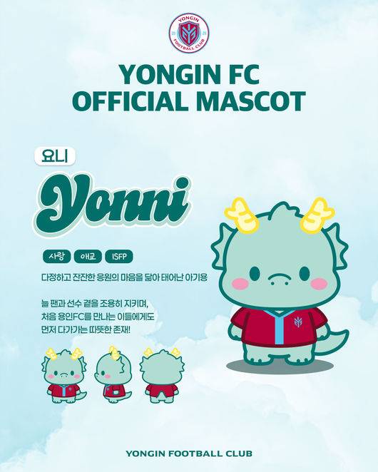 용인FC 관계자는 "요니와 이니는 단순한 캐릭터를 넘어, 용인FC와 용인을 상징하는 또 하나의 얼굴이자 팬들과의 소통을 넓혀갈 중요한 매개체"라며 "앞으로도 다양한 콘텐츠와 현장 프로그램을 통해 요니와 이니가 팬들에게 스며들 수 있도록 하겠다"고 밝혔다.