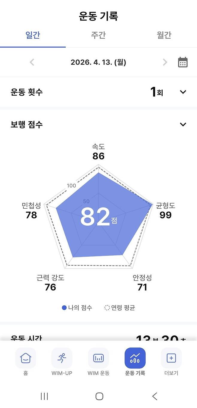 처음 로봇을 착용하자 허벅지와 복부에 와닿는 낯선 느낌에 보행이 어색하게 느껴졌다. 그러나 윔 S의 전원을 켜고 전용 모바일 애플리케이션(앱)과 연동하자 로봇이 근육의 움직임을 감지해 다리를 앞으로 가볍게 밀어주기 시작했다. 앱 화면에는 ‘에어’ ‘등산’ ‘케어’ ‘아쿠아’ 등 여러 보행 모드와 함께 보행 속도, 균형, 근력 데이터가 실시간으로 제공됐다.