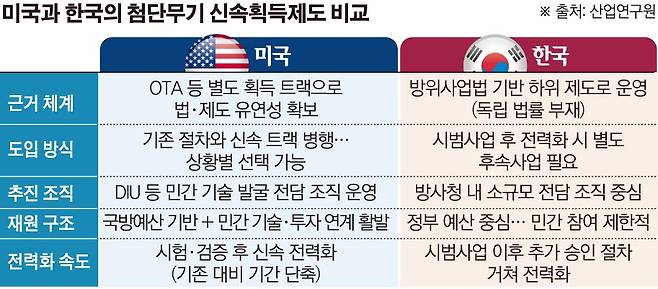한국의 신속시범사업은 미국과 일본, 이스라엘 등 국방 선진국들이 구축한 ‘민간 기술의 군 신속 도입’ 모델을 참고해 도입됐다. 다만 국가별 제도 도입 시점과 세부 설계 방식에서는 차이를 보인다. 가장 앞선 행보를 보인 곳은 미국이다. 미국은 지난 2015년 국방혁신단(DIU)을 신설한 데 이어, 2018년에는 중간단계획득제도(MTA)를 제도화하며 민간 기술의 국방 전용을 가속화했다. 일본은 2022년 국가방위전략 개정을 통해 민간 기술의 조기 장비화를 공식화했다. 이어 2024년에는 방위이노베이션과학기술연구소를 출범시켜 기술 도입을 전담하게 했다. 이스라엘의 경우 2010년대 후반부터 ‘이노펜스’(INNOFENSE)와 ‘이노탈’(INNOTAL) 등 특화된 프로그램을 운영 중이다. 이를 통해 스타트업의 국방 시장 진입을 본격화하며 실전 중심의 기술 생태계를 구축했다는 평가를 받는다.