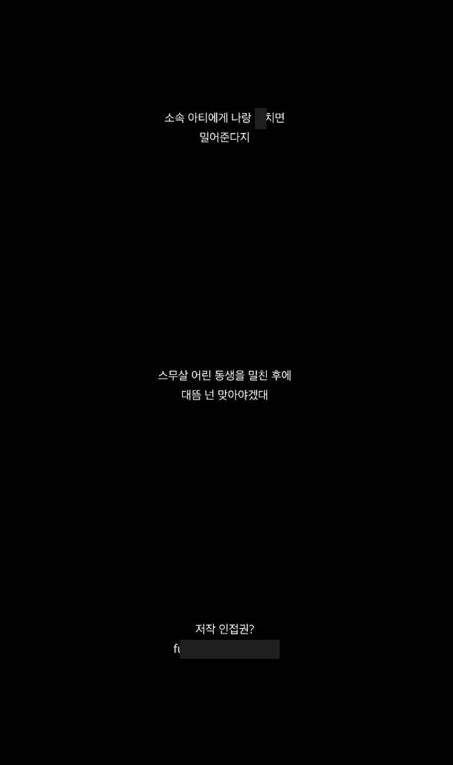 '스무 살 어린 동생을 밀친 후에 대뜸 넌 맞아야겠대. 넌 힙합이 아니라더니 갑자기 네 리스펙을 받아야겠대', '저작 인접권? 너 동의 없이 팔았잖아 형들 마스터권. 막을려고 네 파산. 그리고 산 포르쉐' 등 추가적인 주장도 이어졌다.
