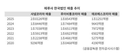3대 명품인 '에루샤(에르메스·루이비통·샤넬)'의 국내 실적이 고공행진하고 있다. 명품 가운데서도 고가에 속하는 에루샤가 지난해 한국에서 역대급 실적을 달성하며 불황에도 굳건한 성장세를 보여줬다. 급격한 가격 인상으로 중산층은 선뜻 구매하기 어려워진 수 천만원대 명품을 소비하는 부유층의 탄탄한 수요가 가장 큰 요인으로 분석된다. 혼인율 반등과 함께 원화 가치 하락에 따른 외국인 매출 수요도 국내 명품 매출 성장을 이끌고 있다.