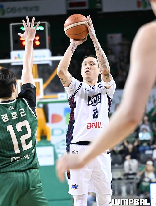 역전에 재역전이 반복된 명승부였다. KCC는 전반을 58-43으로 크게 앞선 채 마쳤다. 순조로운 흐름 속에 후반을 맞이했지만, 3쿼터 들어 급격히 흔들렸다. 헨리 엘런슨과 이선 알바노에게 고전, 한 쿼터에만 37점을 내주며 73-80으로 역전을 허용한 채 3쿼터를 마쳤다.