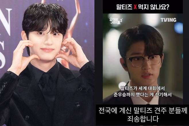 김재원은 15일 자신의 계정을 통해 "전국에 계신 말티즈 견주분들께 죄송합니다"라는 글을 업로드했다. 이와 함께 그는 자신이 출연 중인 티빙 오리지널 시리즈 '유미의 세포들 시즌3' 측이 올린 공식 쇼츠 영상을 공유해 눈길을 끌었다. 해당 영상에는 극 중 신순록(김재원)이 강아지에 대해 "말티즈는 똥도 먹지 않나요?"라며 "지능이 낮지 않냐"라고 발언하는 장면이 담겼다.