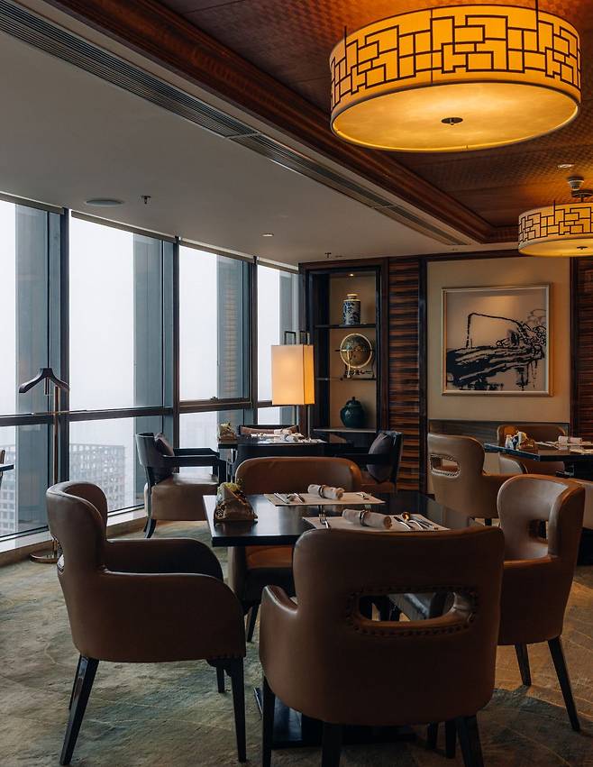리츠칼튼 청두 26층에 자리한 시그니처 레스토랑. 청두라면 당연히 쓰촨 요리를 기대했겠지만, 호텔에서 추구하는 미식의 방향은 다소 다르다. 청두의 거리가 강렬한 향신료와 자극적인 맛으로 승부를 본다면, 호텔 레스토랑에서는 정교한 기술과 균형 잡힌 미식을 추구한다. 그래서 청두의 럭셔리 호텔 레스토랑 대부분은 쓰촨 요리 대신 광둥 요리를 중심으로 선보인다. 향신료의 강도보다는 재료의 풍미와 조리 기술을 섬세히 선보일 수 있기 때문이다.