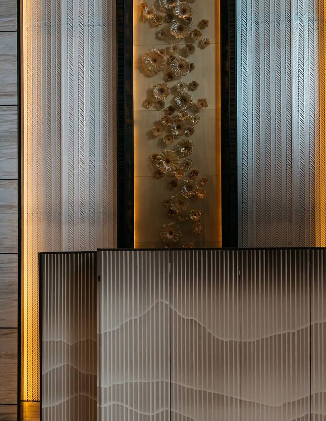 사실 '리츠칼튼'이란 이름은 호텔 시설의 이모저모를 굳이 나열하지 않아도 될 만큼, 그 수준을 보장하는 브랜드다. 그렇다면 이곳을 여행자의 집처럼 느끼게 하는 것은 바깥의 모든 것들이 절대 침범할 수 없도록 육중하게 닫힌 객실의 문 때문인 걸까, 아니면 두툼한 두께로 쓰인 다양한 패턴의 대리석이나 무늬목을 사용한 목재 가구의 안정감 때문인 걸까. 비틀어지거나 힘없이 늘어진 구석 없는 반듯하고 정갈한 분위기 때문일지도 모르겠다만, 사실 이 모든 것이 그 이유기도 하다.