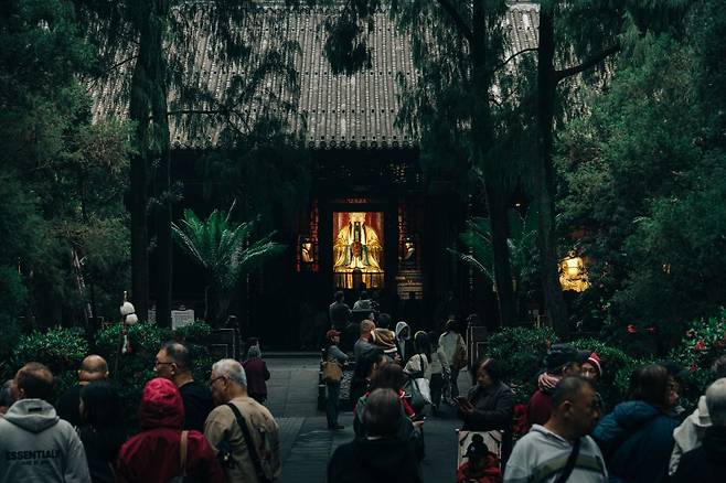 대부분 <삼국지>를 소설로 기억하지만, 줄거리 자체는 중국의 실제 역사에서 비롯했다. 후한 말 혼란 속에서 각지의 군웅이 세력을 다투던 시대, '유비'는 촉 지역에 기반을 두고 '촉한'을 세우는데, 청두가 바로 그 촉한의 수도다. 유비의 곁에는 장비와 관우, 그리고 언제나 제갈량이 있었다. 청두의 무후사(武侯祠)는 촉한의 재상이었던 제갈량을 모시는 사당이다. '무후(武侯)'라는 이름은 제갈량의 시호에서 비롯됐다.