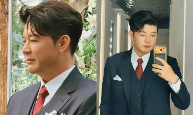 신동은 최근 자신의 계정을 통해 "오늘 결혼식 사회 보고 왔어! 오랜만에 맞춤정장 입고 메이크업에 머리까지 제대로 하니 낯설고 새롭다"는 글과 함께 여러 장의 사진을 게시했다. 공개된 사진 속 신동은 몸에 딱 맞는 수트 차림으로 결혼식 마이크를 잡고 있는 모습이다. 특히 다이어트 후 홀쭉해진 몸매와 베일 듯 날카로워진 턱선이 돋보이며 '리즈 시절'을 연상케 하는 훈남 분위기를 자아냈다.