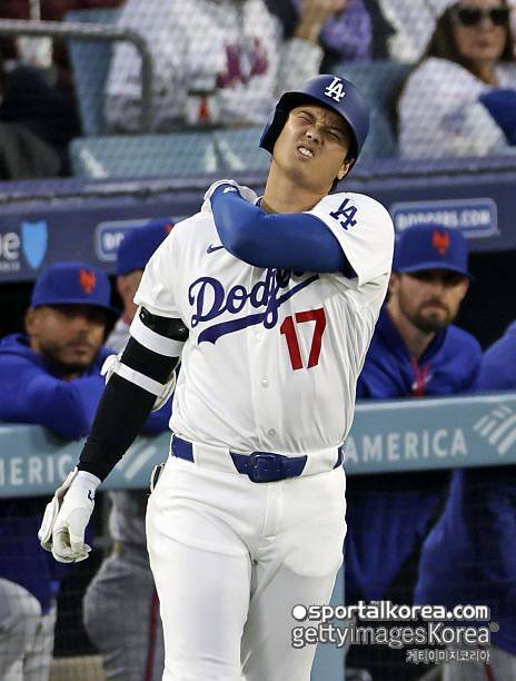 사구의 영향을 떠올리는 팬들도 많았다. 오타니는 지난 14일 메츠전에서 첫 타석부터 시속 94마일(약 151.3km) 싱커에 오른쪽 어깨 부근을 맞고 출루했다. 당시 강한 충격으로 고통을 호소하는 모습도 보였다.