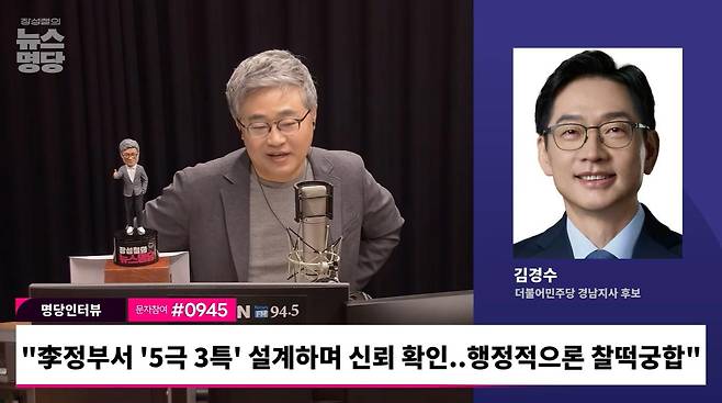 ◆ 장성철 : 네, 김대중 대통령의 국민의 정부부터 노무현 대통령의 참여 정부, 문재인 정부의 국정기획자문위 그리고 이재명 대통령의 청와대까지 그곳에는 모두 이분이 있었다는데요. 김경수 더불어민주당 경남지사 후보, 지금 전화로 연결되어 있습니다. 후보님 나와계시죠?