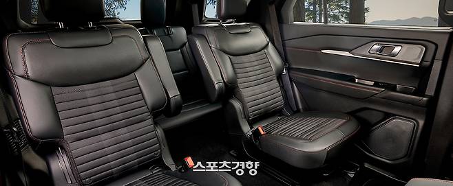 이 덕에 장거리 이동 시 동승자가 편히 쉬거나, 뒷좌석에서 간단한 짐 정리를 할 수 있는 여유가 생긴다. 3열 시트는 폴딩이 가능해 캠핑 장비, 자전거, 카약 패들 등 부피 있는 아웃도어 장비를 실을 때 실내 공간을 유연하게 확장할 수 있다.