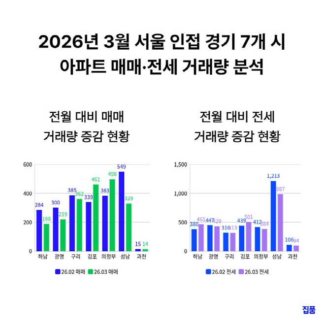 반면 경기도 내에서도 집값이 비싼 지역은 거래가 줄어들고 있다. 성남시의 경우 3월 거래량이 329건으로 전월(549건) 대비 40.1% 감소했다. 과천시 또한 매매 14건, 전세 94건으로 전월(매매 15건, 전세 106건) 대비 거래량이 줄었다.