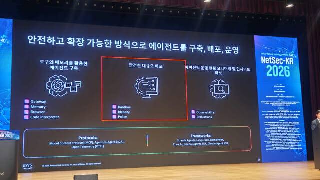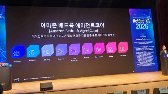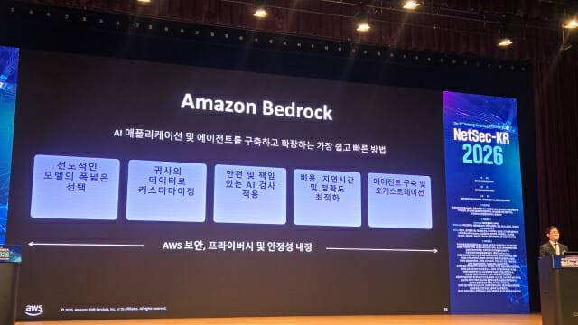 김영훈 아마존웹서비스(Amazon Web Services Korea, 이하 AWS) 정책협력실 부사장은 한국정보보호확회가 개최한 보안 행사로 16일 서울 코엑스에서 열린 '정보통신망 정보보호 컨퍼런스 ‘NetSec-KR 2026’ 기조연설에서 AWS가 '베드록' 기반으로 열어가는 에이전틱AI 서비스의 안전성과 활용성을 강조했다. 김 부사장은 이날 '견고한 보안 기반 위의 에이전틱 AI'를 주제로 발표했다.