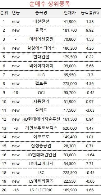 이밖에 삼성SDS와 현대건설이 각각 순매수 4위와 5위에 올랐다.
