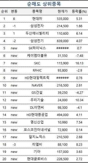 이밖에 삼성전기와 SK하이닉스가 각각 순매도 4위와 5위에 올랐다.
