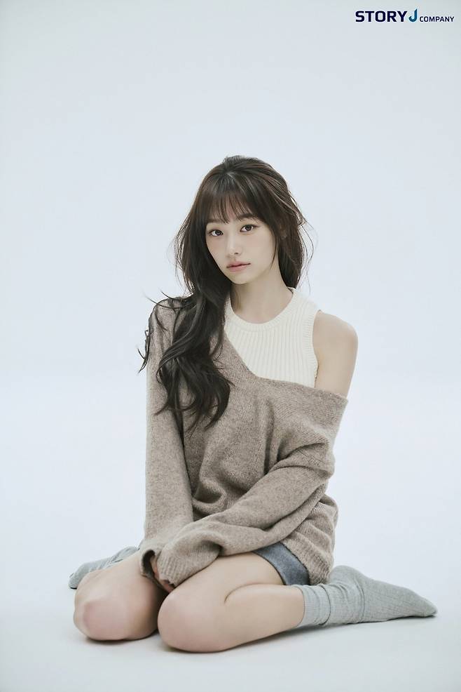 또 다른 컷에서 강미나는 브라운 톤 니트를 입고 차분한 매력을 드러낸 모습이다.