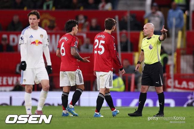 영국 '더 선'은 16일(한국시간) "캐릭 맨유 감독은 리즈 유나이티드전 리산드로 마르티네스의 퇴장을 두고 '내가 본 최악의 판정 중 하나'라고 목소리를 높였다. 하지만 정작 화면에 남은 장면은 너무 선명했다. 상대 선수의 머리카락을 분명히 잡아당겼다. 그러나 맨유가 이 판정에 대해 공식 항소할 예정"이라고 보도했다.