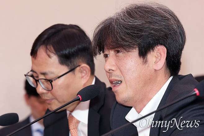 | ▲ '진술 압박' 의혹 증언하는 남욱 변호사 대장동 개발사업 특혜 의혹으로 재판받고 있는 남욱 변호사가 16일 서울 여의도 국회에서 열린 '윤석열 정권 정치검찰 조작기소 의혹 사건 진상규명 국정조사'에 증인으로 출석해 답변하고 있다. |