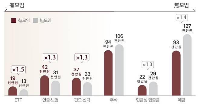 모임을 하는 부자는 상장지수펀드(ETF) 등 최근 유행하는 안정적인 투자상품에 1.5배 더 많은 자산을 배분하고 있었다.
