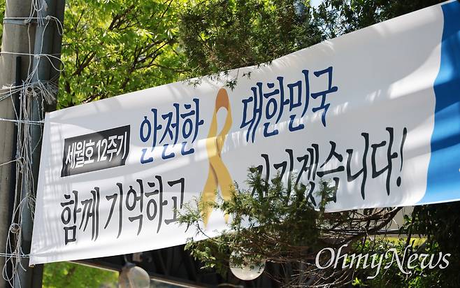 | ▲ 세월호 참사 12주기인 4월 16일 부산시 부산진구 부산시교육청 인근 도로에 더불어민주당 부산진구(갑)지역위원회의 추모 펼침막이 부착돼 있다. |