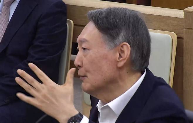 | ▲ 윤석열씨는 4월 9일 이상민 전 행정안전부장관 내란중요임무종사 사건 항소심 재판에 증인으로 나와 증언을 하고 있다. |