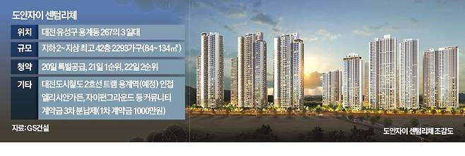도안신도시가 포함된 대전 유성구 주민의 평균 연령(지난달 기준)은 41세다. 대전(44.6세)과 전국(46세) 평균보다 낮다. 대덕연구단지 등 산업단지가 많은 ‘대전 서남권 최대 주거 벨트’로 가족 단위 실수요자가 꾸준히 유입되고 있어서다. 대전도시철도 2호선(트램) 용계역, 나노·반도체 국가산단 등이 예정돼 발전 가능성에 대한 기대도 크다. GS건설이 도안신도시에 짓는 ‘도안자이 센텀리체’에 관심이 쏠리는 배경이다.