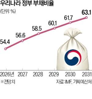 IMF는 15일(현지시간) 발표한 '재정 모니터' 보고서에서 "2031년까지 한국과 벨기에의 국내총생산(GDP) 대비 일반정부 부채 비율(D2)이 63%와 122%에 이를 것"이라고 예상했다.