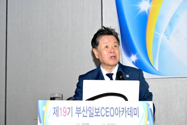 지난 14일 부산롯데호텔에서 열린 부산일보 CEO아카데미 제19기 수업에서 김광호 콤비마케팅연구원 원장은 ‘골프 홀인원 확률’로 강연의 문을 열었다. AI와 인간의 격차를 직관적으로 보여준 이 질문을 시작으로 인간이 어떻게 살아야 하는지에 대한 이야기를 풀어갔다.